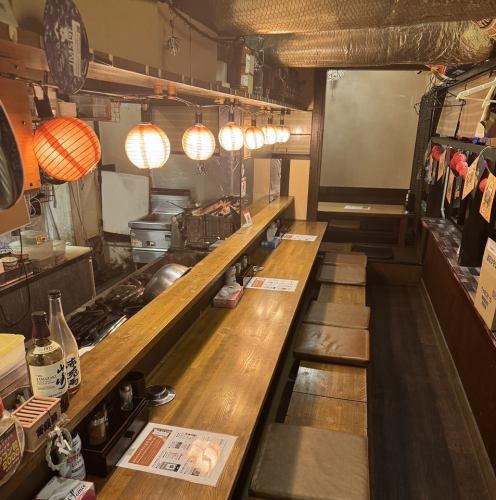 The first floor also has lively counter seats! Solo customers are also welcome ◎ Recommended for a quick drink after work, or when you want to enjoy a relaxing meal by yourself.You can also enjoy conversation with the young and energetic staff, and enjoy a special seating area where you can see the yakitori being grilled over charcoal!
